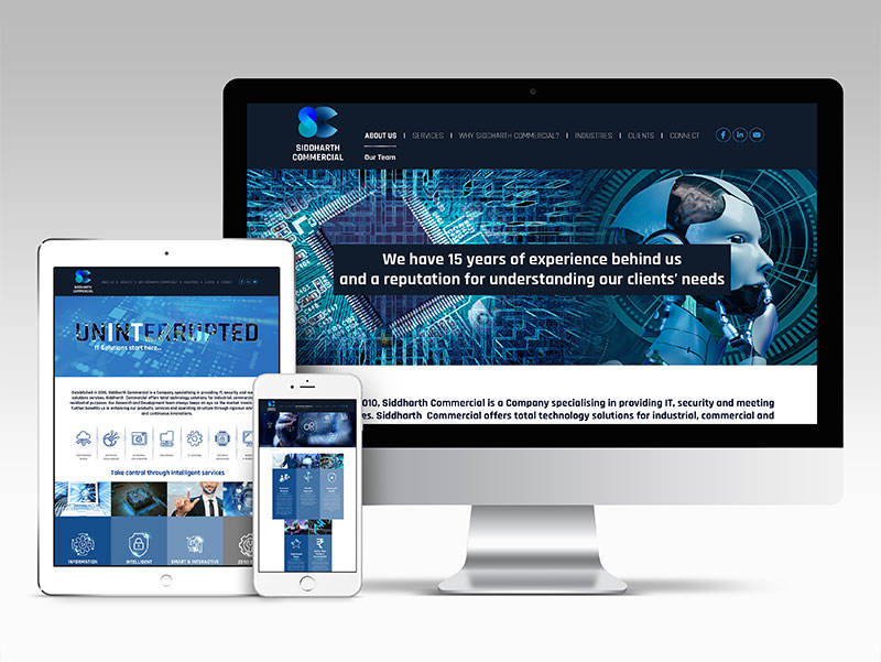 The website we designed for this IT services provider used illustrations with a smart focus and colours that highlighted modernity and efficiency. Siddharth Commercial's experience and professionalism were highlighted through the approach.