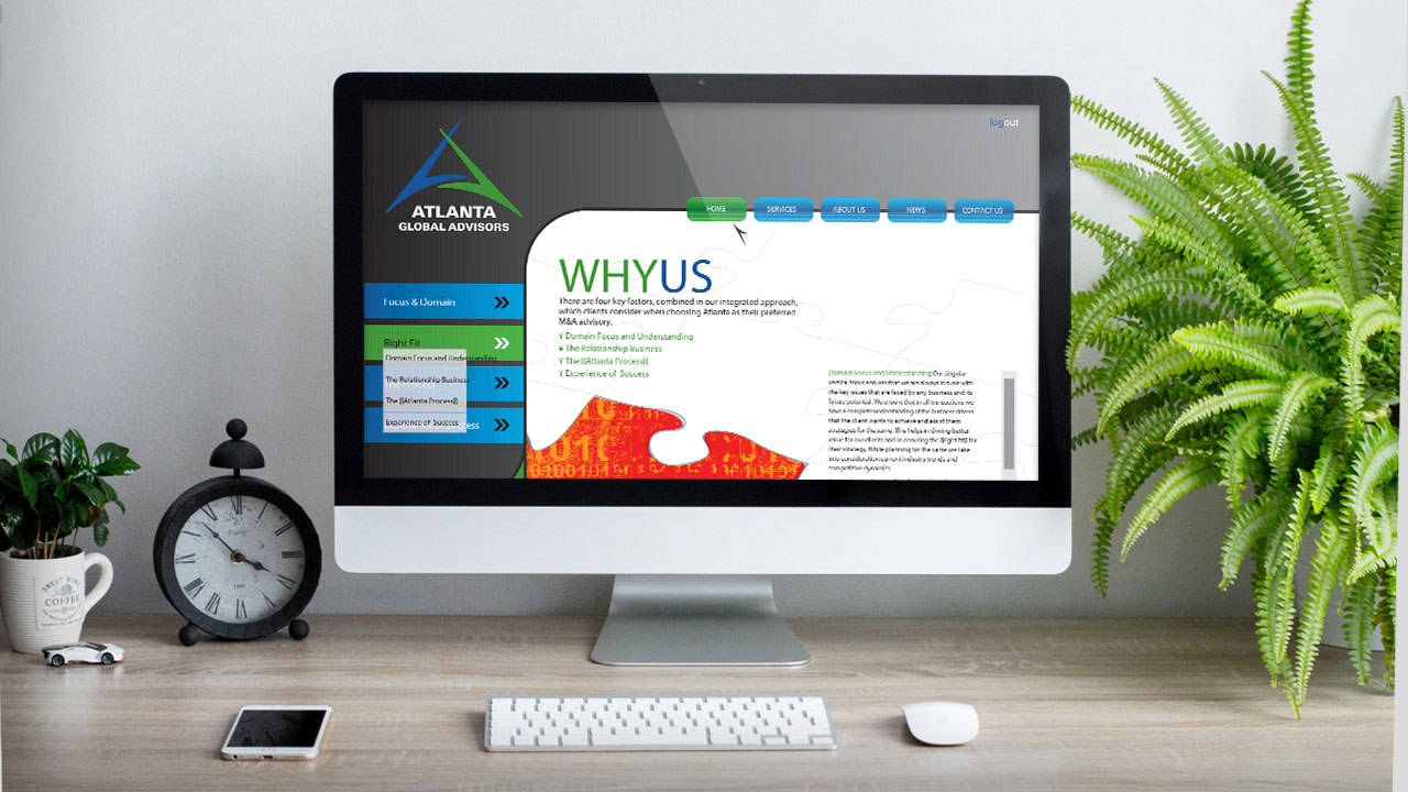 Our designs for Atlanta Global Advisors reflected the international nature of the consulting firm, seeking to connect corporate players from around the world.